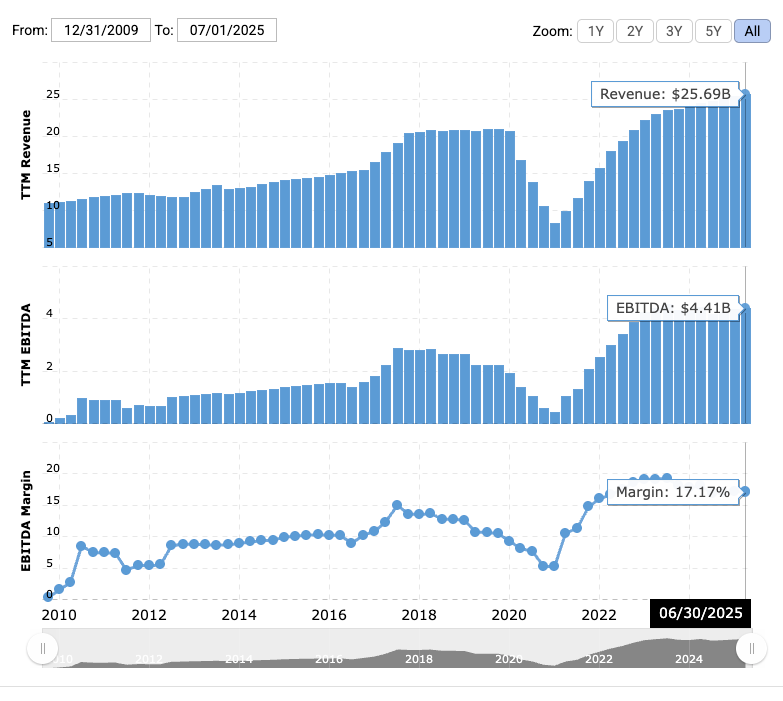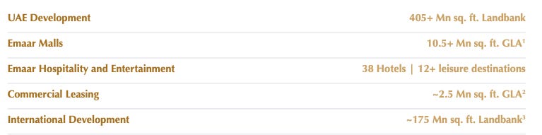 The hospitality portfolio – 38 hotels with 9,200 keys – operates at 50% EBITDA margins. For context, Marriott runs at <20% EBITDA margins. The difference: Emaar owns the real estate and the operations.