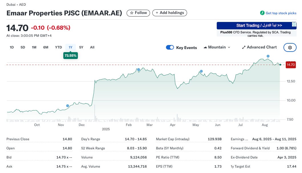 With an AED 146.3 billion revenue backlog, a net margin of 53%, and stock price up 86% in 18 months, Emaar have built something that transcends traditional real estate economics. Although I couldn’t find up-to date figures, stats from 2019 show that Emaar owned a 36% market share in off-plan sales in Dubai’s property market.