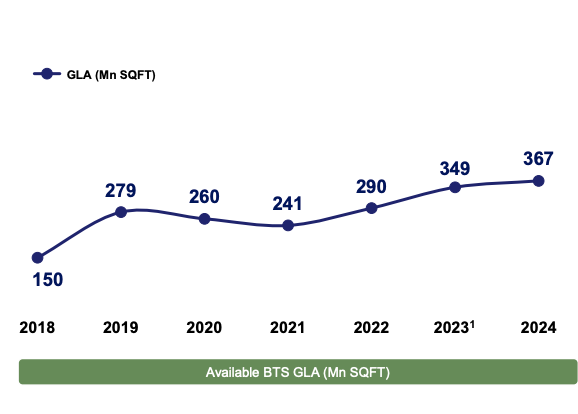 Commercial leasing adds another layer with 1.4 million square meters of leasable space. Recurring revenue grew 26% in 2023, faster than the overall business.